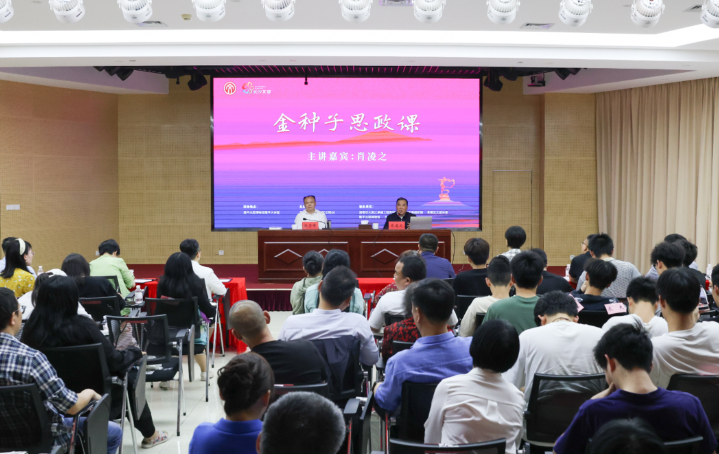 参观结束,“金种子”思政课正式开启。活动由芙蓉区委常委、宣传部部长赵雪峰主持,现场嘉宾云集。主讲嘉宾肖凌之,这位曾任湖南省委宣传部副部长、省文明办主任,同时也是《人生当有》作者的资深学者,为同学们带来了一场精彩的思想盛宴。