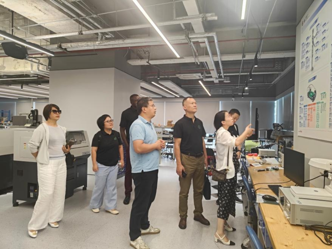 在固高科技创工场,该院院长吴孜越围绕工业自动化技术研发、校企协同育人机制,讲解了企业在工业自动化领域的技术优势与人才需求标准。针对“如何开展‘订单式’人才培养”“企业导师进校园的具体实施路径”等问题,吴孜越结合与多所高校的合作案例,分享了“订单班课程设计”“企业导师参与毕业设计指导”“共建实践教学基地”等经验。双方还就联合开发实训课程、推进学生实习就业合作等议题初步交换意见,为我院探索“产教融合”育人路径提供企业视角的参考。