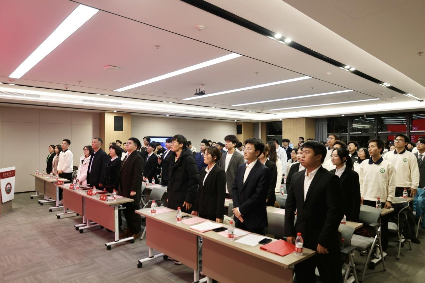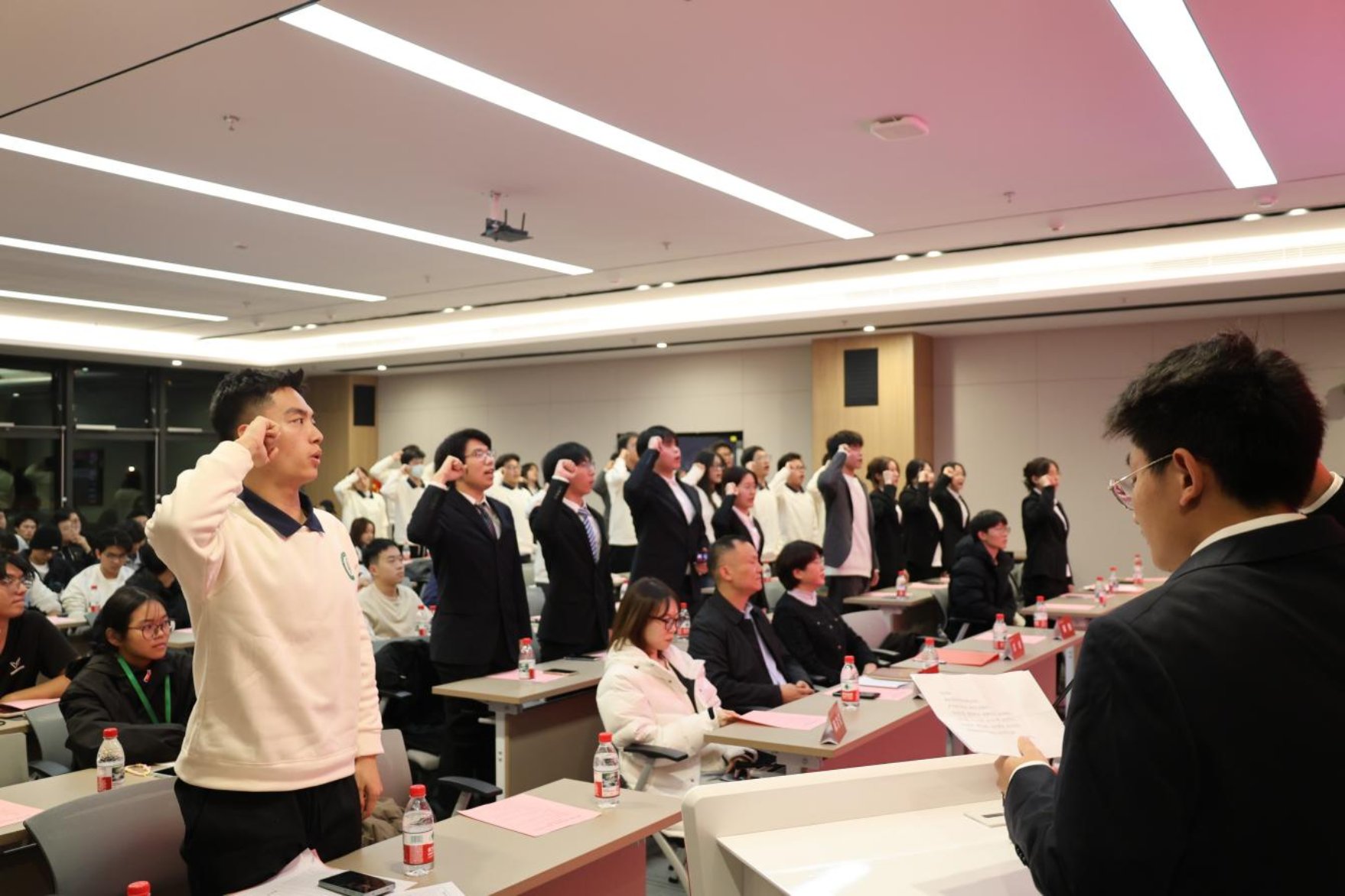 干部代表发言环节,2024级班长李东昊分享了班级建设与学生组织协同发展的思考;学生会执行主席徐智航阐述了“服务同学、助力成长”的工作理念;志愿者干部代表吴承昊表达了积极履职、与组织共同进步的决心。随后,在主席团代表肖华香的领誓下,第一届团总支学生会全体成员面向学院领导、老师、同学庄严宣誓承诺:将以饱满热情投入工作,勇于担当、善于作为、勤于服务、敢于创新、不辱使命。