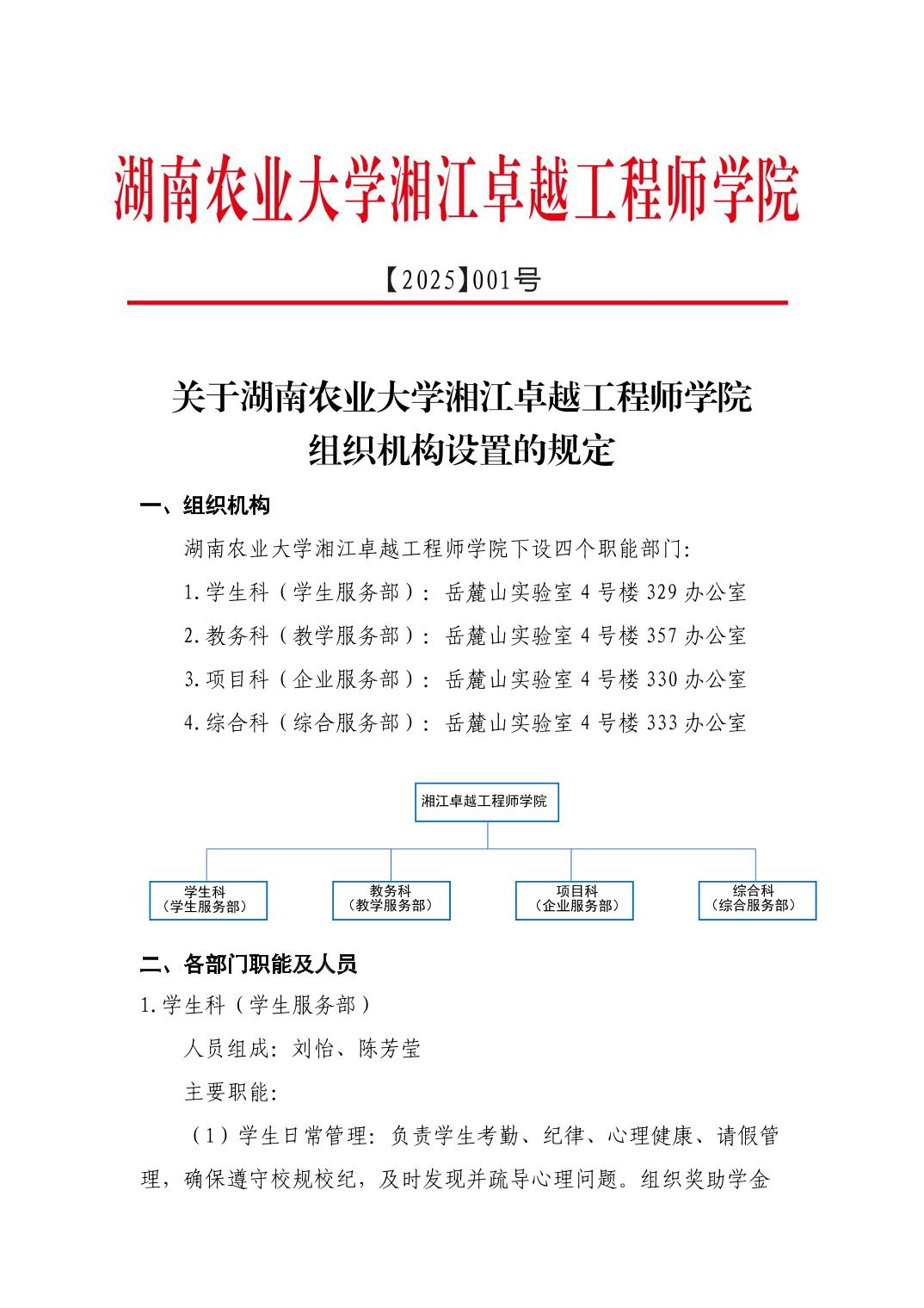 关于湖南农业大学湘江卓越工程师学院 组织机构设置的规定