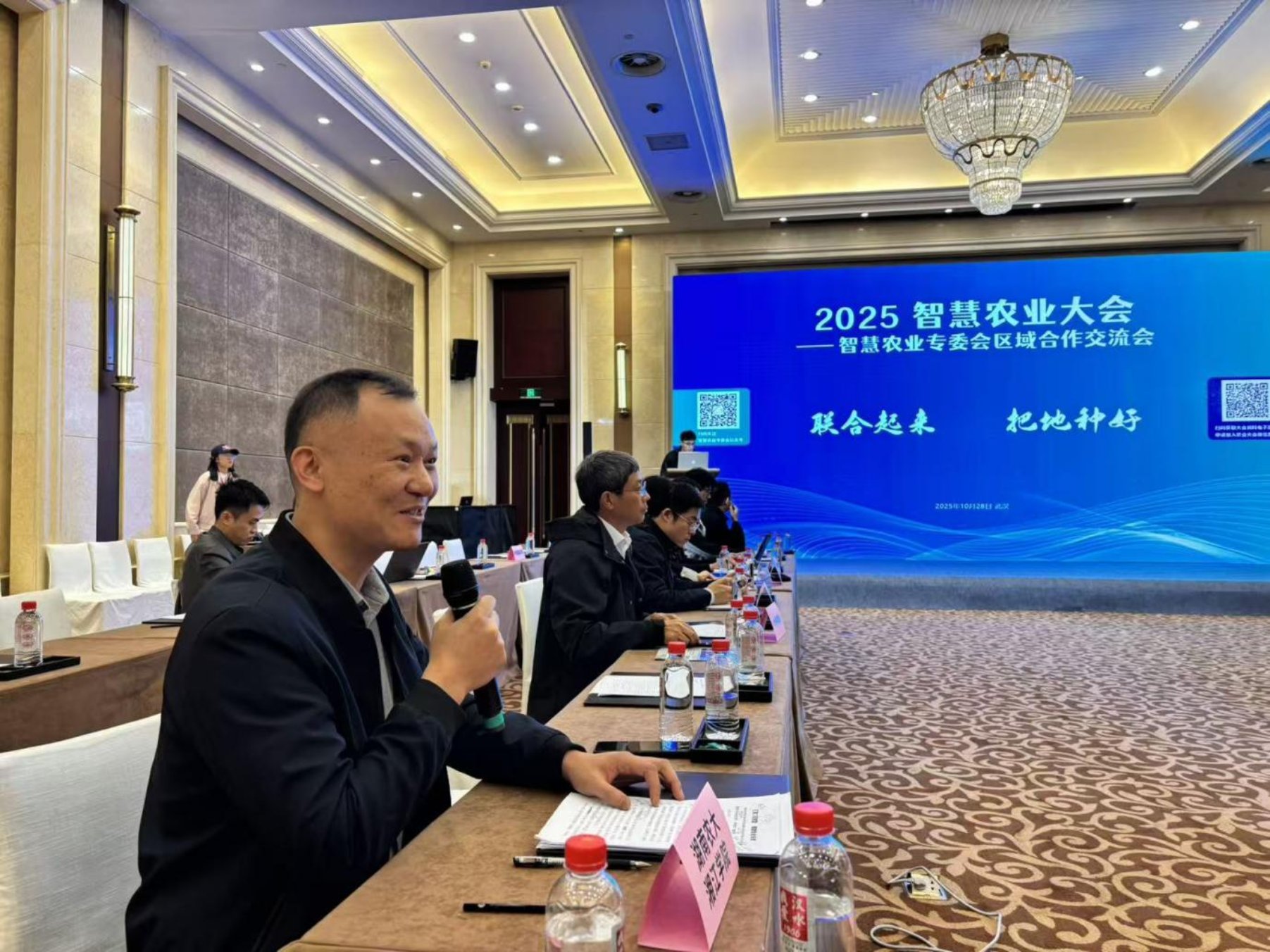 10 月 28 日,汤庆熹、黄鑫及彭姣春受邀参加展览会分活动--中国农业机械流通协会智慧农业专委会举办的2025 智慧农业大会。汤庆熹即席发言,他以 “汇聚工程智慧 赋能农业未来” 为题,简要介绍了学院发展历程、办学特色以及学院在智慧农业、智能农机、农业无人技术领域产教融合、人才培养成果,阐述了“聚焦立德树人,努力培养‘既懂农业又懂工程’复合型人才”的工作举措,提出了资源共享、基地共建、人才共育、项目共培等合作诉求。